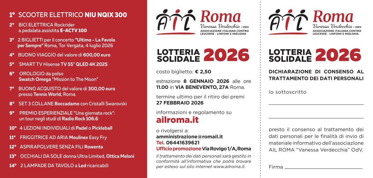 Estrazione 8 GENNAIO 2026 alle ore 11.00 in VIA BENEVENTO, 27A Roma.