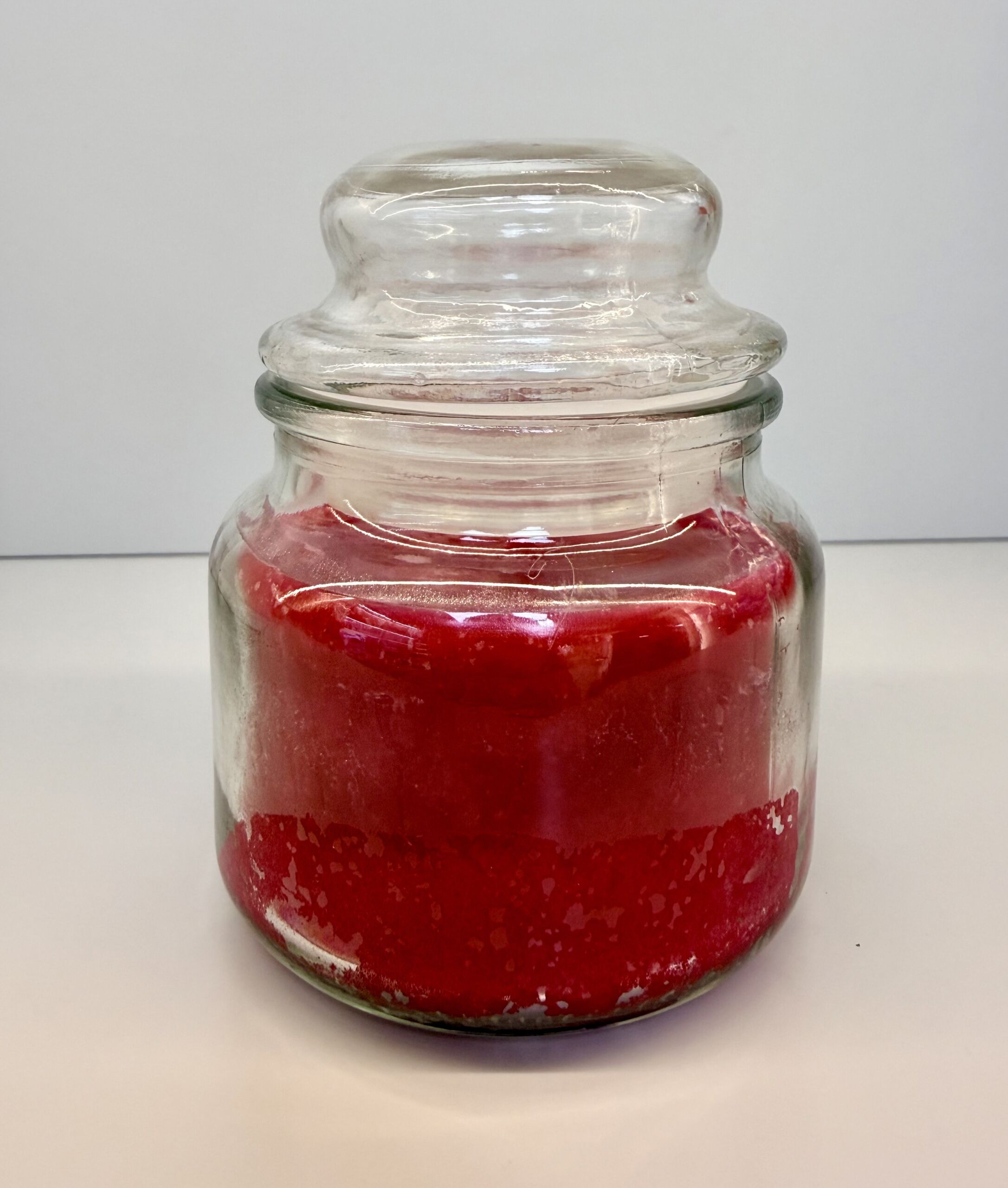 - Una candela in un barattolo di vetro trasparente con coperchio.