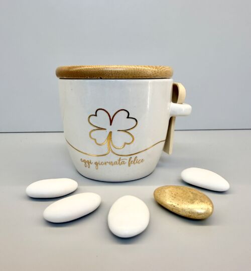 Bomboniera in ceramica: zuccheriera con quadrifoglio